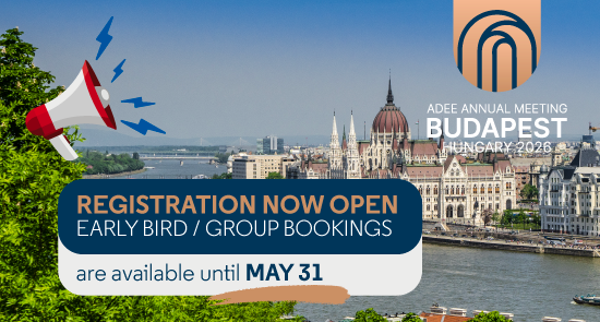 Early bird and group bookings are now open for ADEE 2026 Budapest. Take advantage of early bird and group bookings available until 31 May, after which standard rates will apply. For more information click here.