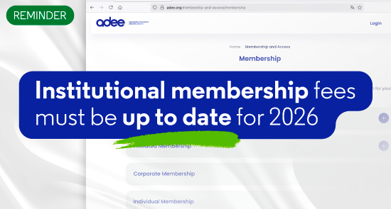 The ADEE Board sincerely thanks those member institutions who have paid their annual membership dues. This is a reminder that to avail of group bookings or early bird membership rates, institutional membership fees must be up to date. If you have any queries about your institutional invoice do not hesitate to contact Vesna Colic.