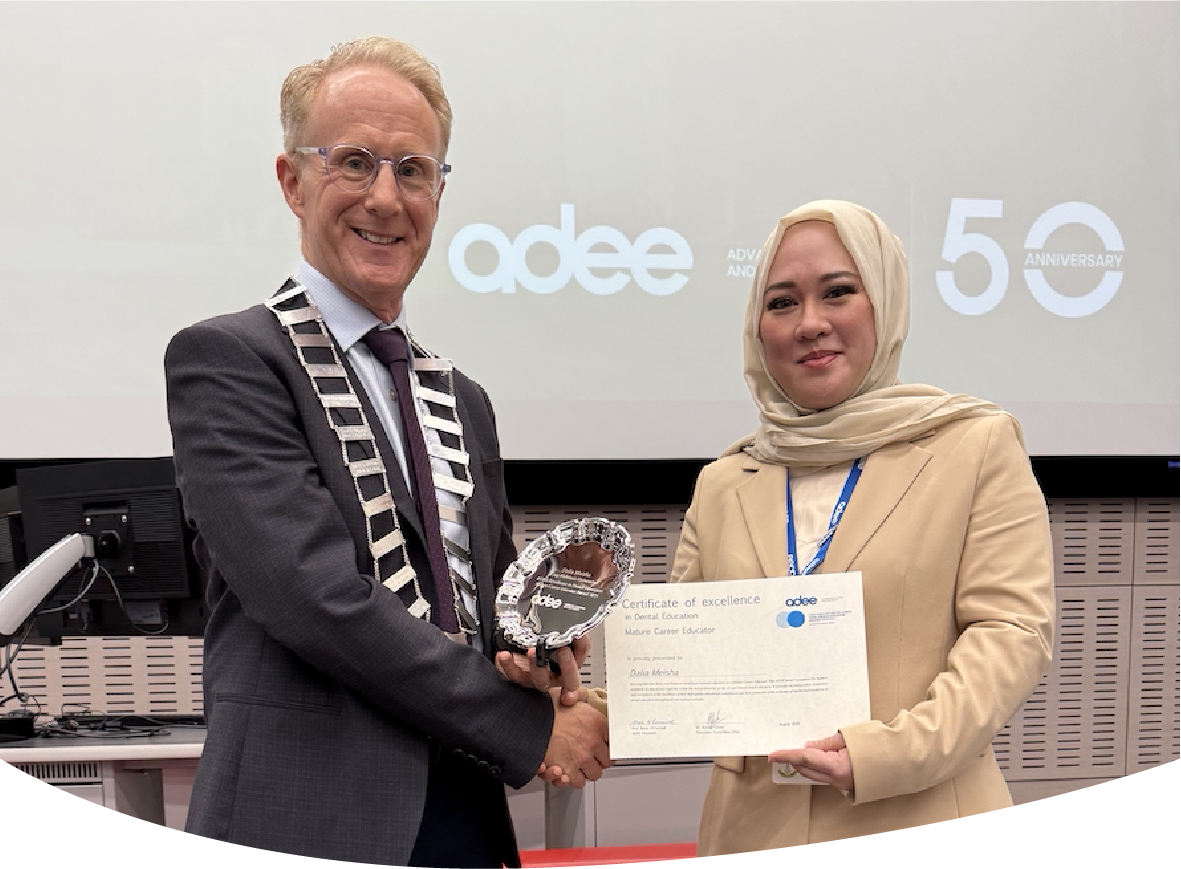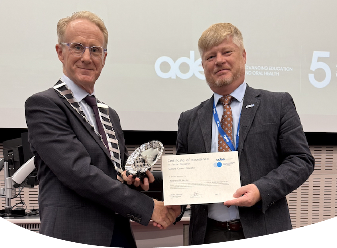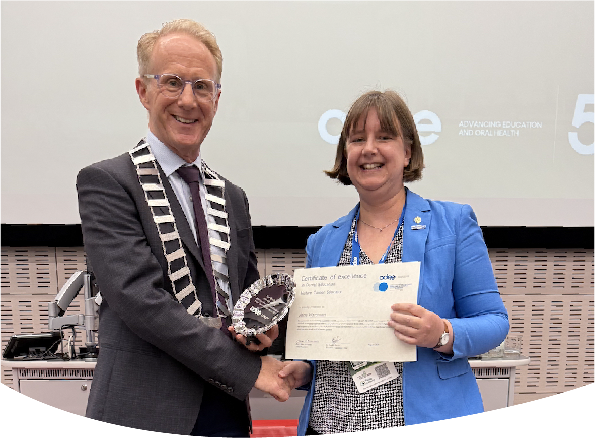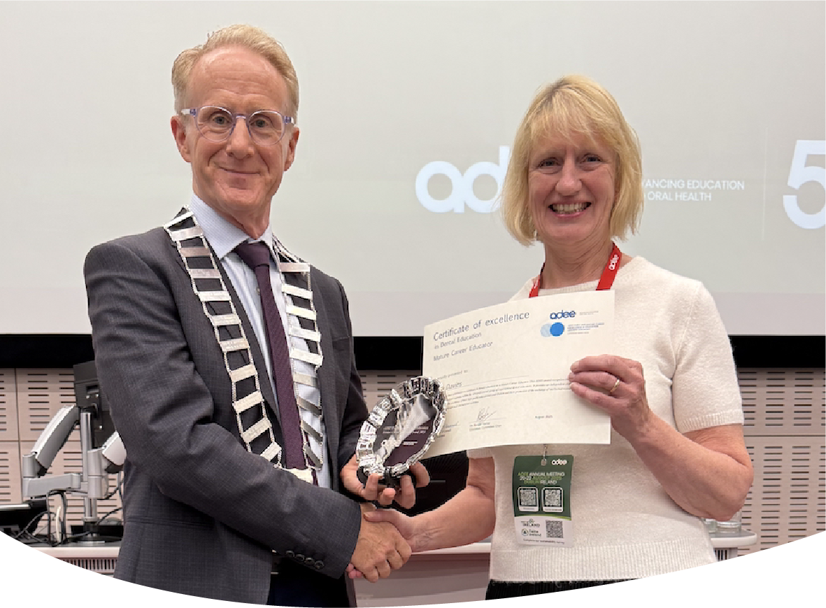 Mature career awards were issued to five colleagues who demonstrated their early commitment to the education of oral health professionals, engagement with the higher education community and alignment with ADEE values.The ADEE Board and membership congratulates both on their recognition.